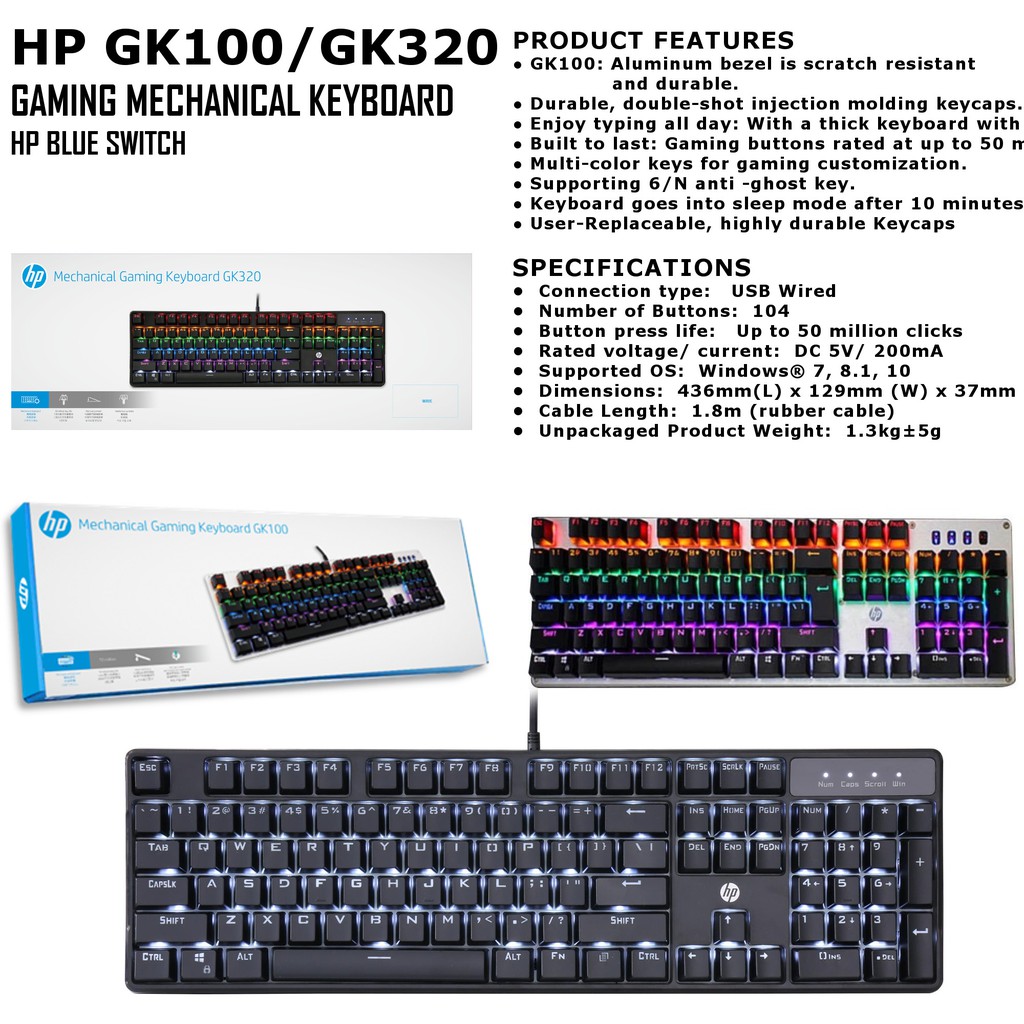 Hp Mechanical Keyboard Gk100 Silver Gk320 Black Hp Blue Switch Shopee Singapore